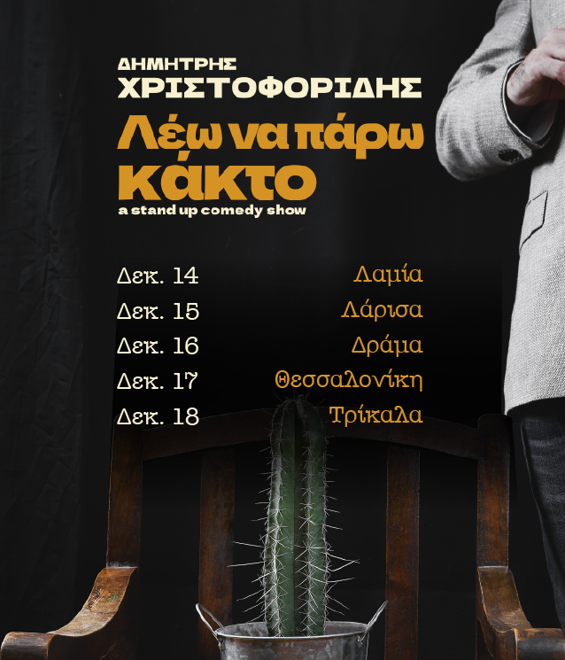 Ο κάκτος του Χριστοφορίδη, μετά απο συνεχόμενα sold out στην Αθήνα, βγαίνει για την πρώτη του περιοδεία. Ο Δημήτρης Χριστοφορίδης κάνει μια στάση στη δεκαετία των 40, έναν σταθμό ζωής όπου η πιο μεγάλης σημασίας και δεσμευτική απόφαση που φαίνεται ικανός να πάρει είναι η αγορά ενός… κάκτου.
